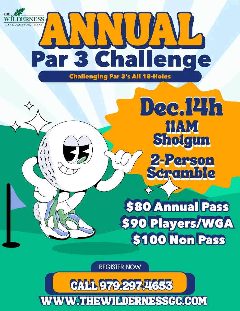 Join us for one of the most exciting events of the year at The Wilderness! Test your short game across 18 unique par 3 holes and compete in a fun, social 2-person scramble.